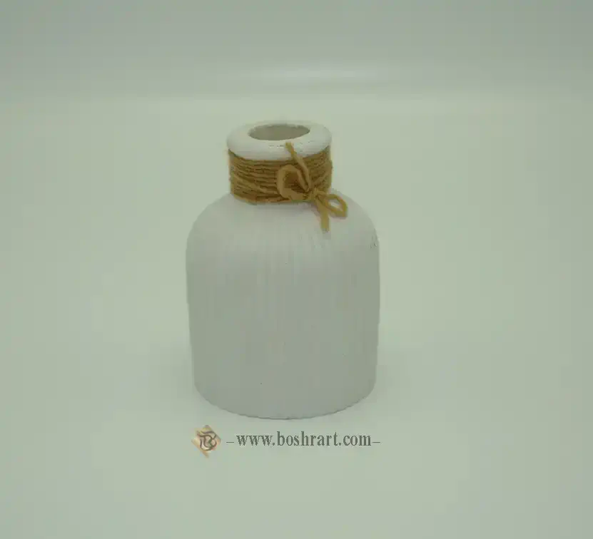 خرید گلدان بتنی سفید مدرن با بند کنفی | انتخابی شیک برای گل‌های خشک و دکوراسیون خاص